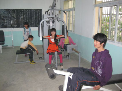 2009年9月,鳳臺縣第七中學(xué)投資近5萬元,購買體育設(shè)備、建立鍛煉室,由值班老師負責管理,每天中午和傍晚對外開放,讓學(xué)生鍛煉身體。