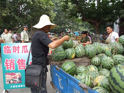 5月23日上午,孔店鄉(xiāng)3名瓜農(nóng),今年第一次駕駛滿載瓜果的拖拉機(jī),來到了大通區(qū)大轉(zhuǎn)盤街附近路段的瓜果臨時(shí)銷售點(diǎn)。他們高興地對記者說:“沒想到區(qū)城管行政執(zhí)法局會將臨時(shí)瓜果點(diǎn)設(shè)在熱鬧的路段上,我們的瓜果特別好賣。”據(jù)了解,這家執(zhí)法局與各物業(yè)公司、單位、社區(qū)接洽,在鬧市路段街口設(shè)14個(gè)臨時(shí)瓜果銷售點(diǎn),方便瓜農(nóng)進(jìn)城賣瓜果。