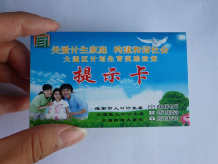 計(jì)劃生育獎(jiǎng)勵(lì)是國(guó)家給予計(jì)劃生育家庭的一項(xiàng)獎(jiǎng)勵(lì)政策,尤其在農(nóng)村,計(jì)劃生育獎(jiǎng)勵(lì)政策的普及尤為重要。大通區(qū)計(jì)生委為了讓區(qū)內(nèi)群眾更加了解計(jì)劃生育獎(jiǎng)勵(lì)政策和領(lǐng)取時(shí)間及辦法,特別制作了“關(guān)愛計(jì)生家庭 構(gòu)建和諧社會(huì) 大通區(qū)計(jì)劃生育獎(jiǎng)勵(lì)政策提示卡”(如圖),提示卡正面印有市、區(qū)計(jì)生委的電話號(hào)碼,背面則印著政策法規(guī)及獎(jiǎng)勵(lì)領(lǐng)取時(shí)間、地點(diǎn)等。據(jù)了解,目前該提示卡已發(fā)放到戶,計(jì)生家庭可按提示卡上的時(shí)間領(lǐng)取獎(jiǎng)勵(lì)。