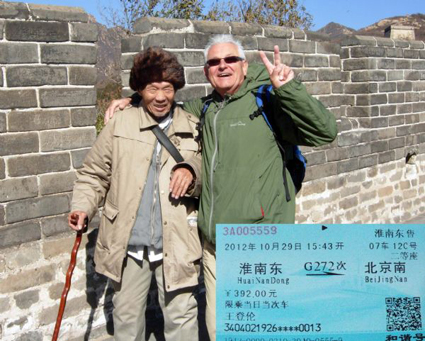 十八大前的北京給王登倫老人留下了深刻印象,他告訴記者,央視新聞中報道的天安門廣場上的那個國慶大花籃還依然擺放在那里,到了現(xiàn)場你才能感受到,那個大花籃比電視中出現(xiàn)時,不知大了多少倍。登八達(dá)嶺長城時,不少老外看到88歲高齡的王登倫都翹起了大拇指,記者在王登倫老人登長城的照片中,就看到幾張老外主動與他的合影。