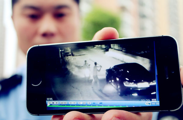 圖:警方展示馬某實施搶劫時掄起木棍砸向受害人視頻截圖