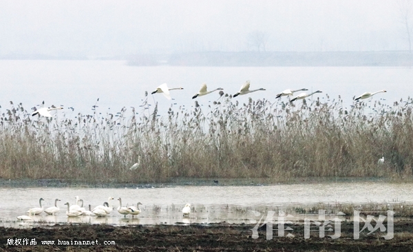 圖一:大批白天鵝已連續(xù)數(shù)年在瓦埠湖等水域越冬。