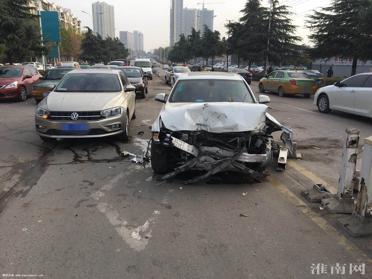 11月21日早上8點(diǎn)47分左右,一輛白色寶馬牌轎車在由東向西行駛至洞山西路軍分區(qū)路段時,因駕車女子一時精力不集中,導(dǎo)致車輛偏移失控,連續(xù)撞擊到左側(cè)十余節(jié)護(hù)欄,巨大撞擊力將護(hù)欄撞擊到對向車道,導(dǎo)致對向車道內(nèi)正常行駛的車輛不同程度受損。接到報警后的淮南市公安局交警支隊田家庵二大隊事故中隊民警立即趕赴現(xiàn)場進(jìn)行處置,目前,該起事故仍在調(diào)查中。