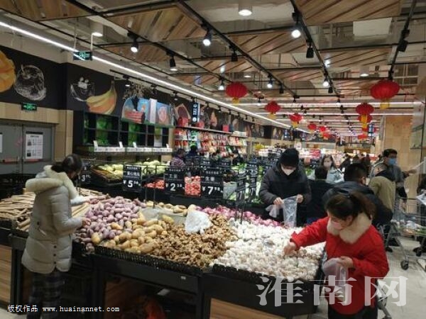在大潤發(fā)超市里,淮河早報、淮南網(wǎng)記者看到,一樓的生鮮區(qū)有不少市民正在選購蔬菜,貨架上的菜品也比較豐富,部分菜品一出現(xiàn)斷貨,超市工作人員就立即補貨,不影響市民購買。超市生鮮部的負責(zé)人表示,他們每天都從外地調(diào)運大量的蔬菜來淮供應(yīng),本月1號、2號兩天,超市蔬菜的調(diào)貨量就達到6噸左右,從3號開始降為3至4噸,平均每天蔬菜供應(yīng)品種在120種左右,基本能滿足周邊地區(qū)居民生活需要,并根據(jù)老百姓購買的品種多少,在下一次進貨時重點補貨。而水果類中,像蘋果、桔子、橙子等較常見的水果供應(yīng)量比較充足,肉類則從阜陽、宿州等地進貨且貨源充足。雞蛋的供應(yīng)量在一天半噸左右,存貨量有四噸!稗r(nóng)超對接”蔬菜每天有15種,且供貨量比較充足,按照低于或等于物價局核準(zhǔn)的價格銷售。同時,超市還開設(shè)有線上吊掛系統(tǒng),主要是為了線上外賣配送,一天約四百余單。該超市相關(guān)負責(zé)人表示,超市里手推車、購物籃一天兩次消毒,商場一天三次消毒,分別在開門前一次,下午兩點一次,關(guān)門前一次,而手扶梯則是一天三遍消毒,讓市民可以安心購物。在位于國慶路的永輝超市里,各種菜品、水果也是一應(yīng)俱全。