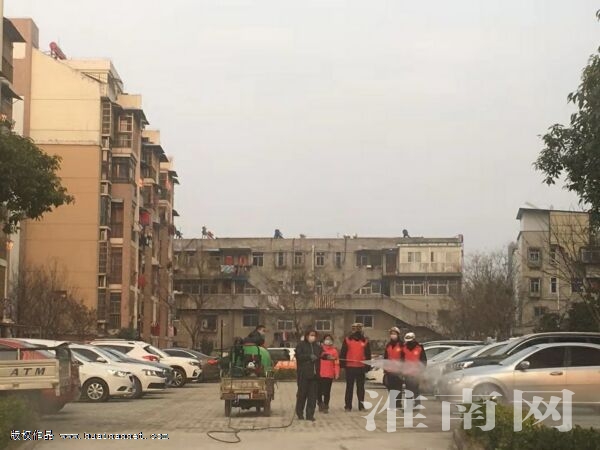 圖:市公路局志愿者對錦路小區(qū)進行消毒