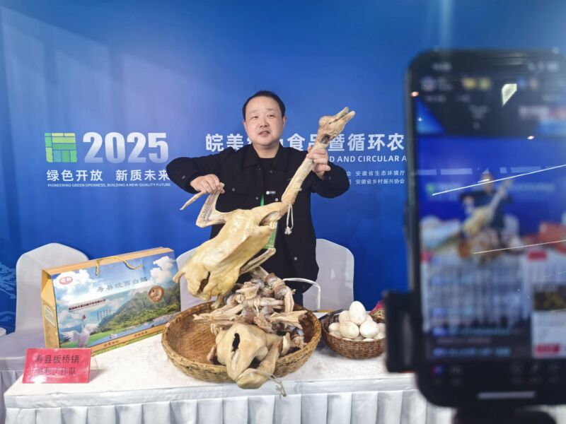 “我們板橋雙門(mén)鋪的黑豬是壽霍黑豬,采用生態(tài)養(yǎng)殖,您看這肉的紋理……這個(gè)咸鵝采用的是皖西大白鵝,大一點(diǎn)的都有十幾斤重……”11月7日至9日,在合肥濱湖國(guó)際會(huì)展中心舉辦的2025皖美綠色食品暨循環(huán)農(nóng)業(yè)博覽會(huì)上,壽縣板橋鎮(zhèn)雙門(mén)鋪村駐村工作隊(duì)的展位前格外熱鬧。此次參展是板橋鎮(zhèn)深入貫徹黨的二十屆四中全會(huì)“加快農(nóng)業(yè)農(nóng)村現(xiàn)代化,扎實(shí)推進(jìn)鄉(xiāng)村全面振興”精神的生動(dòng)實(shí)踐,工作隊(duì)員們既熱情接待現(xiàn)場(chǎng)客商,更架起手機(jī)開(kāi)展線上直播,將板橋草席、壽霍黑豬肉、當(dāng)?shù)貎?yōu)質(zhì)大米、咸鵝及其副產(chǎn)品等同步推介給廣大網(wǎng)友,成為展會(huì)上一道亮麗的風(fēng)景。