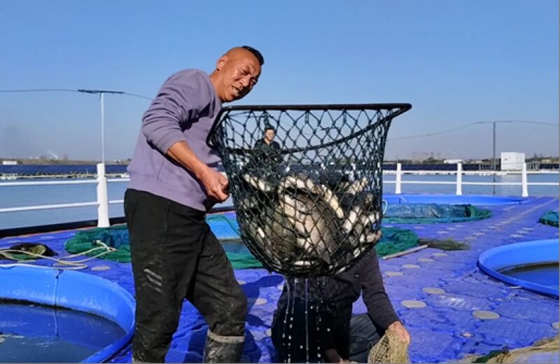 淮南市采煤沉陷區(qū)生態(tài)養(yǎng)殖牧場(chǎng)漂浮圏桶淮王魚養(yǎng)殖基地里,漂浮在水面上的8個(gè)大型圈筒陸續(xù)進(jìn)入收獲季,漂浮圈筒直徑4米,深3.5米,圈筒內(nèi)水流涌動(dòng),淮王魚、黃金鯽、羅非魚、瓦氏黃顙等多個(gè)品種的魚兒活力十足,漂浮圏桶養(yǎng)魚“生態(tài)漁業(yè)示范模式”獲得成功。在溫暖的陽(yáng)光照射下,魚鱗泛著光,人們臉上洋溢著收獲的喜悅。